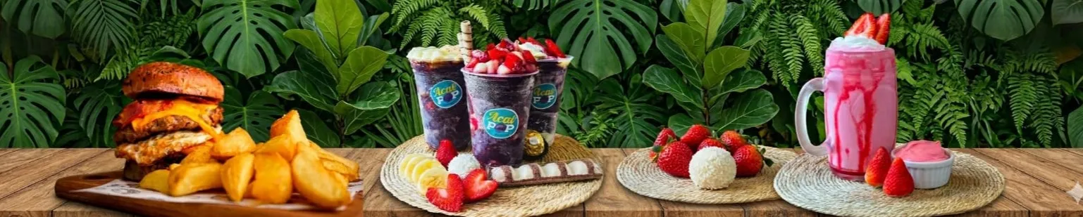 Açaí natural, morango, leite condensado e mousse de morango