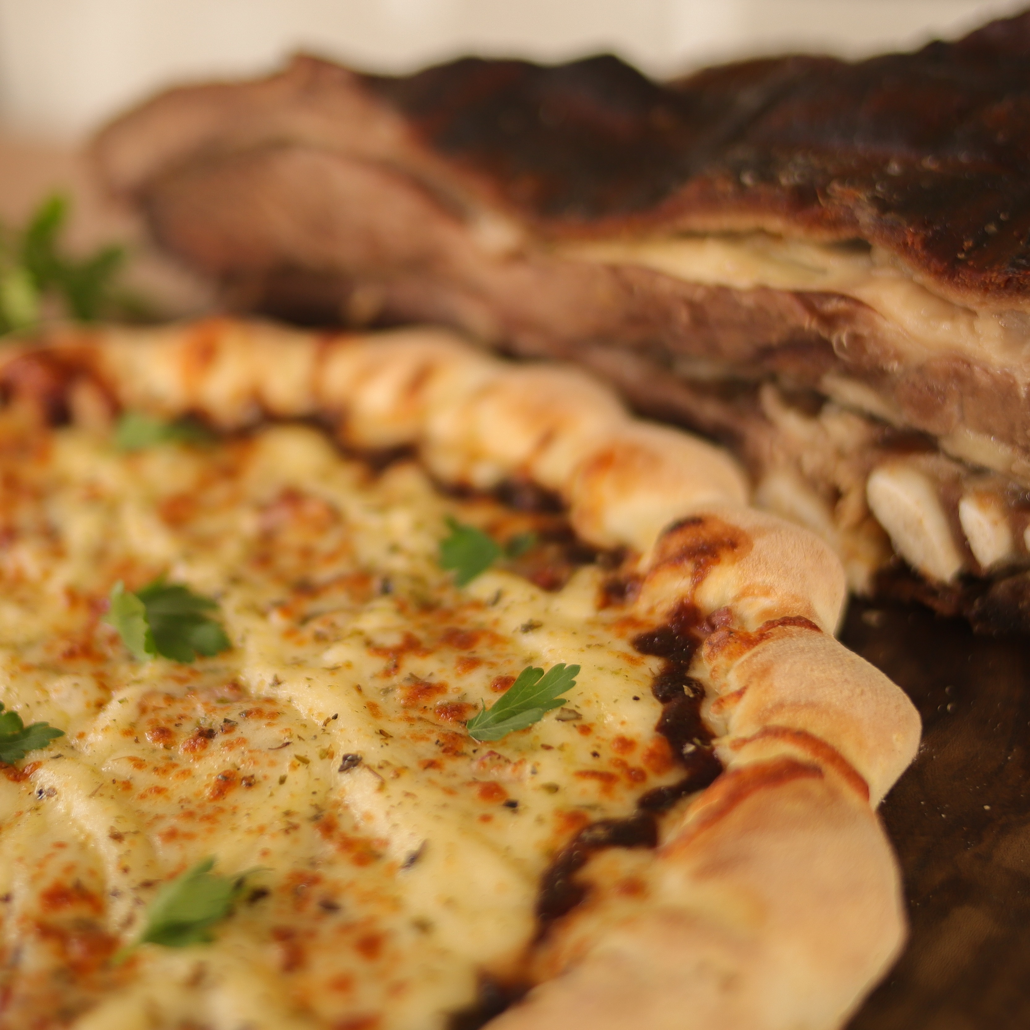 Pizza de 8 fatias de sabor costela com borda de pao de alho!