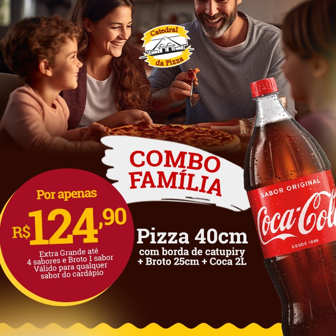 Extra Grande 40cm com borda de catupiry + Broto 25cm + Coca-Cola 2 Litros
