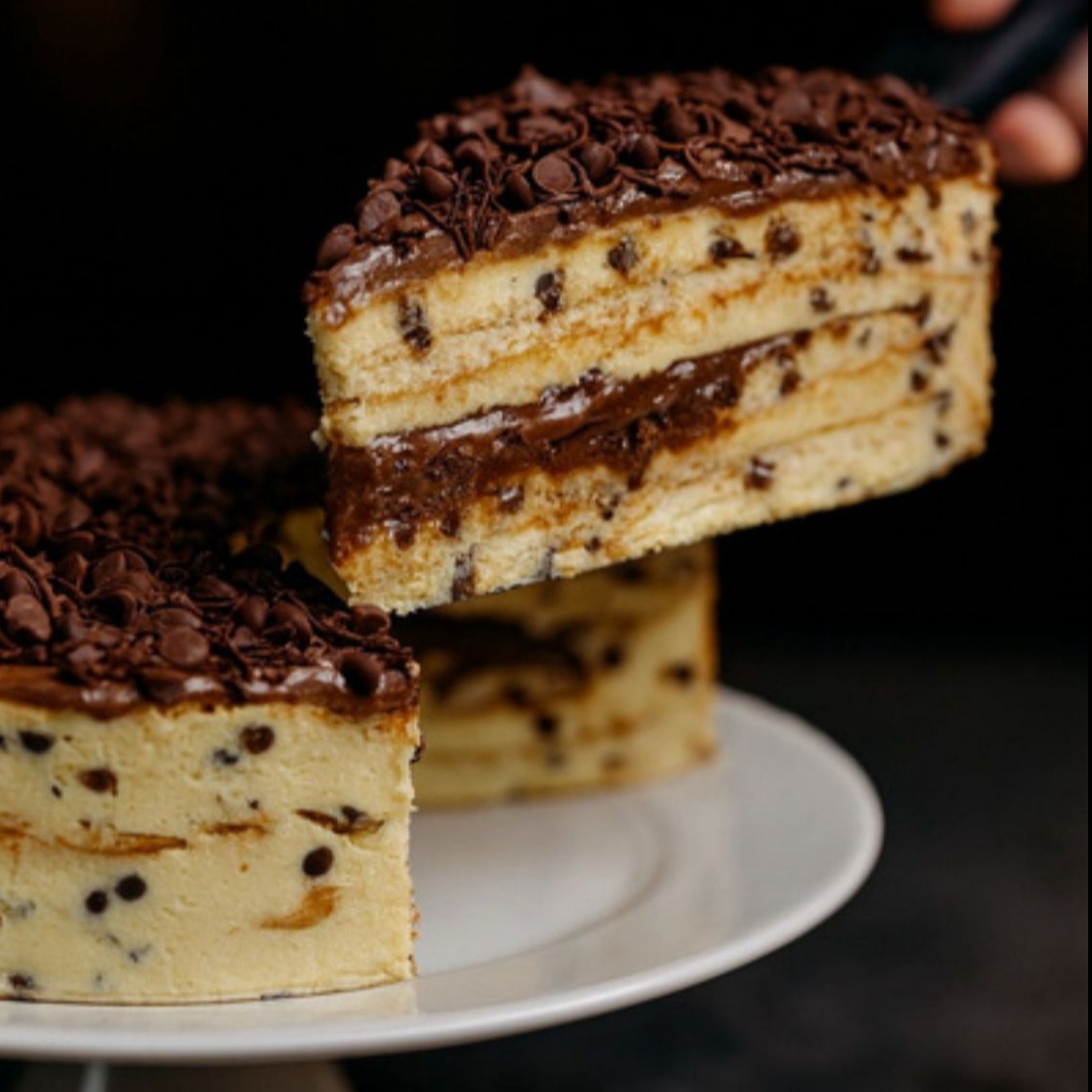 Leve creme de baunilha com gotas de chocolate, intercalado com biscoito maria e brigadeiro tradicional. Coberto com brigadeiro, granulado e gotas chip.