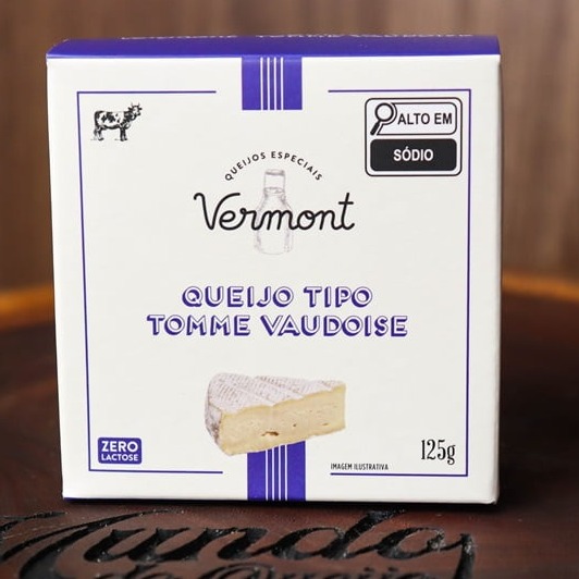 Queijo Tipo Tomme Vaudoise - Vermont Zero Lactose Ingredientes: Leite pasteurizado integral, cloreto de sócio (sal), cloreto de cálcio, fermento lático, coagulante microbiano e Penicillium camemberti.