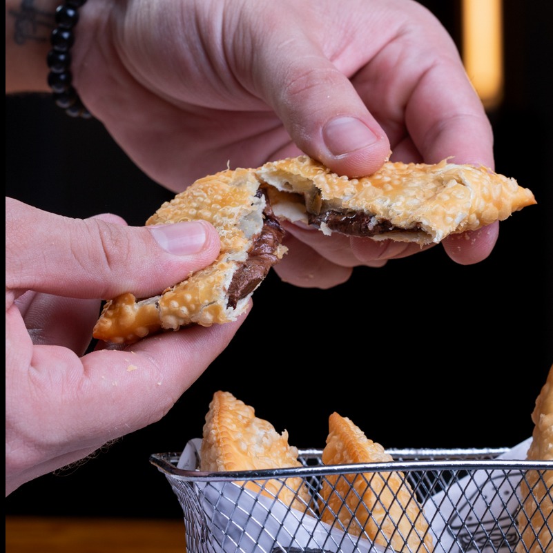 Carne, tomate, milho, azeitona, cheiro verde e queijo minas.