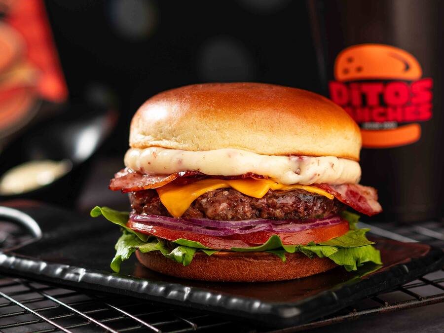 Pão brioche, bife 200g, cheddar fatia, queijo coalho grelhado e banhado no mel, cebola caramelizada, bacon crispy, e maionese de alho.