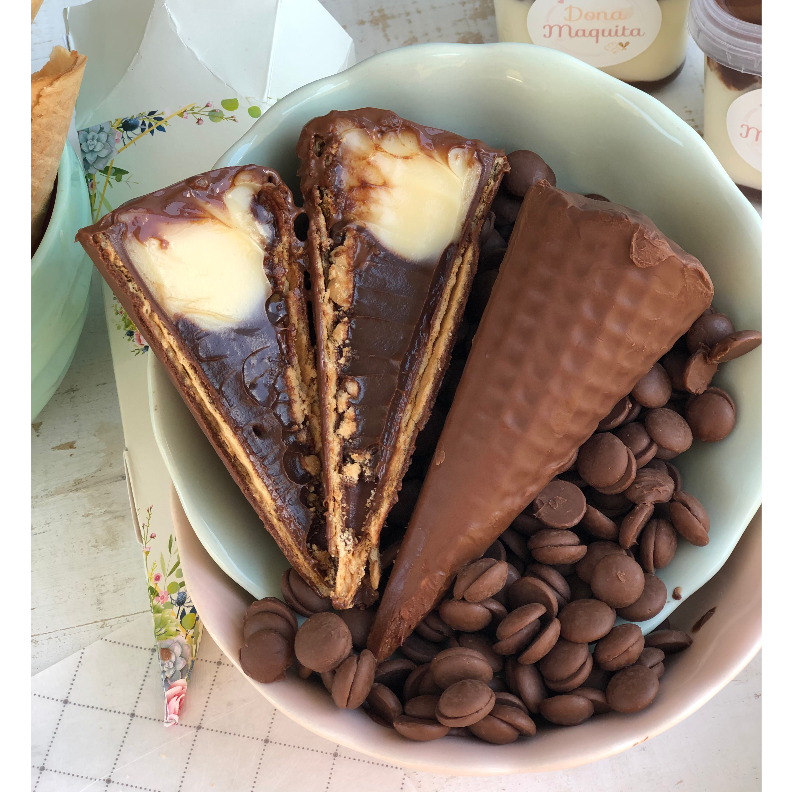 Casquinha de sorvete coberto com chocolate ao leite por dentro e por fora Nessa promoção cada cone sai a 12,00 Aproveita que é só enquanto durar o estoque