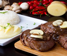 Medalhão de filet mignon grelhado ao molho madeira.