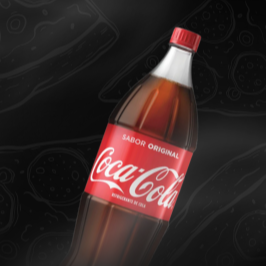 Pizza grande, 8 pedaços, metade Bacon, com mussarela derretida, generosas fatias de bacon e parmesão ralado, e metade calabresa Seara fatiada coberta com mussarela derretida. Finalizada com oregâno e azeitonas verdes.