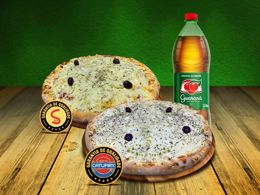2 Pizzas Grandes 08 pedaços + 1 Refrigerante 2 Litros grátis !
