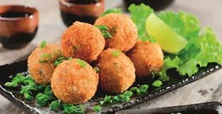 Deliciosas bolinhas de peixe com cream cheese e tempero especial, empanada na farinha panko e frita.