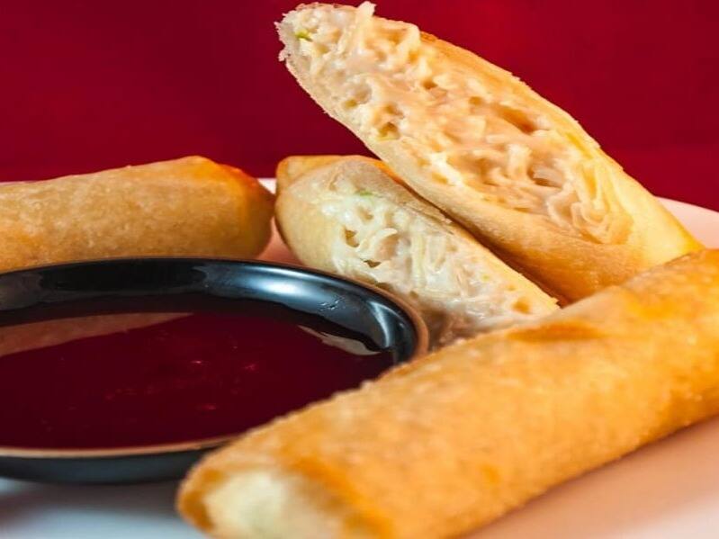 Massa de Harumaki, Alho Poró, frango e cream cheese.