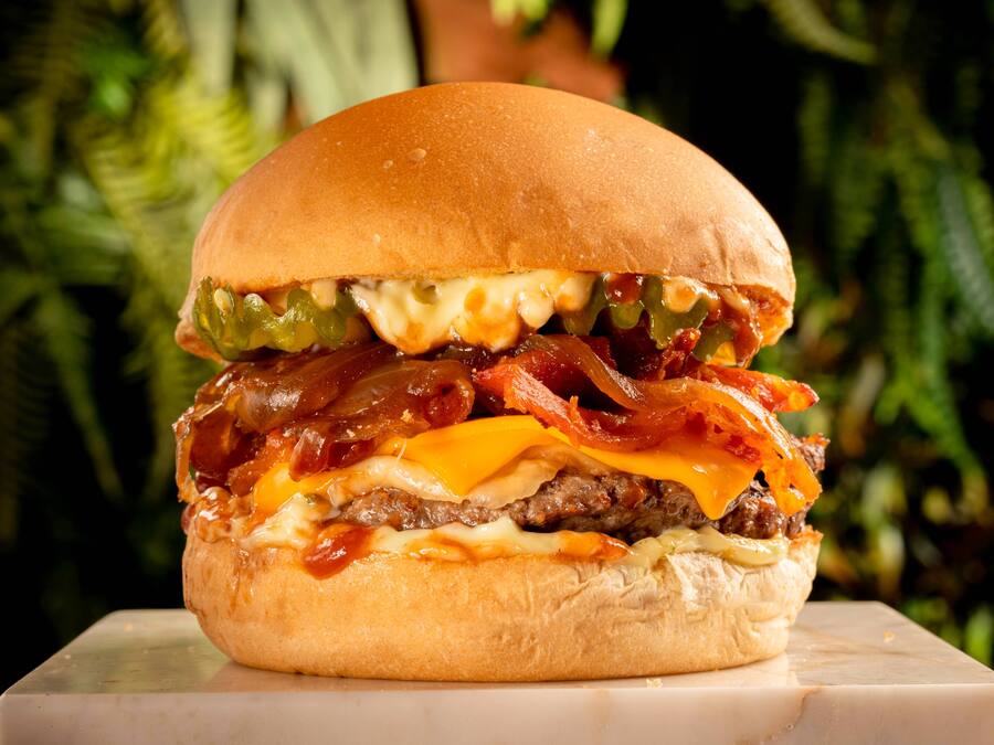 Pão Brioche Hambúrguer de 150 gr bacon queijo cheddar Queijo Prato cebola caramelizada picles mayo molho especial