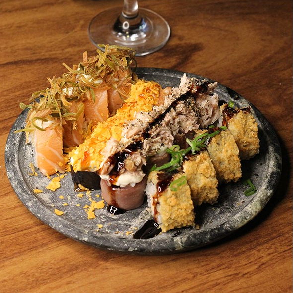 Acompanha: 3 sachês de shoyu, 3 sachês de teriaki, 2 hashis. 20 Hot Filadélfia + 4 Uramaki Kani Cheese + 4 Uramaki salmão skin + 4 Uramaki Boston Crispy + 4 Joy Doritos + 2 Sushi Salmão Skin + 2 Guioza Banana com doce de leite. 40 Peças por $ 69,90 - Faça já o seu pedido!