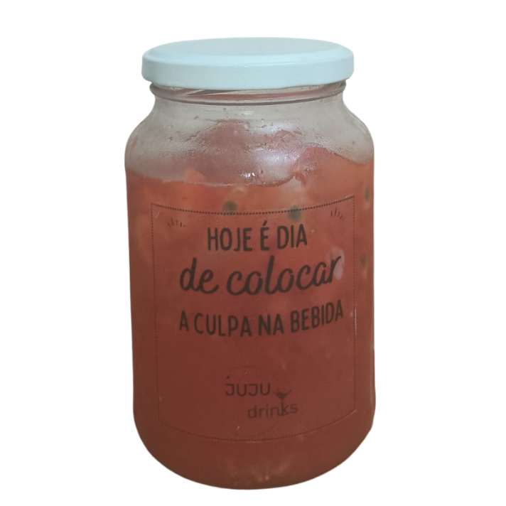 Caipirinha de Morango com Maracujá Cachaça 51, limão, morango, xarope artesanal de morango, maracujá, açucar e gelo Excitante e Vibrante