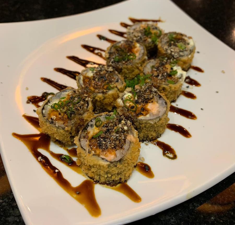 (8 UND) SALMÃO, ARROZ, CREAM CHEESE, EMPANADO NA FARINHA PANKO, FRITO, FINALIZADO COM MOLHO TARÊ E CEBOLINHA. (ALTERAÇÕES E TROCAS SOMENTE SOB CONSULTA)
