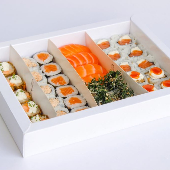 Caixa 1: 6 Uramaki Philadelphia 4 Uramaki tilápia com geleia de pimenta 4 Uramaki Salmão Grelhado 5 Uramaki Skin com crispy 4 Niguiri Salmão 5 Hot Philadelphia 6 Hossomaki de Salmão Caixa 2: 4 Uramaki Philadelphia 5 Uramaki Skin 5 Uramaki Castelinho 5 Uramaki salmão grelhado 5 Uramaki tilápia com geleia de pimenta 6 Shake maki 8 Kappa Maki 6 Hot New Delhi hashi, shoyu, wasabi e gengibre serão cobrados a parte