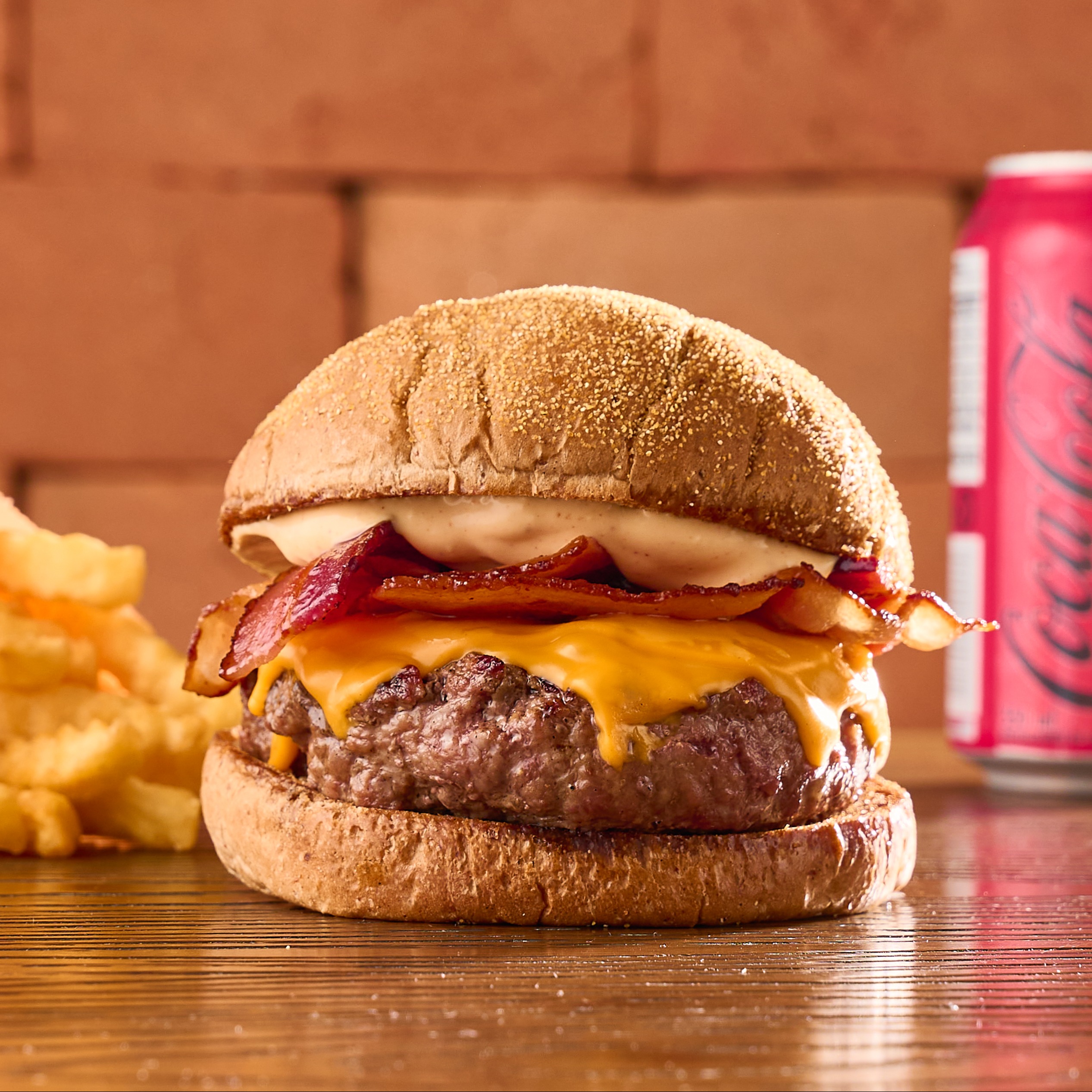 Baconz (170g) + Batata Individual + Bebida Baconz: Pão Australiano, Burger de 170g, duplo queijo cheddar, bacon em fatias e molho especial *Burger Ao Ponto