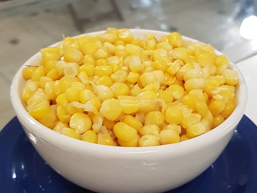 Milho verde cozido e cortado no pote.