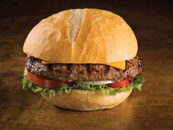 Pão de brioche, hambúrguer artesanal 120gr, queijo american cheese, cebola roxa, alface, tomate e maionese