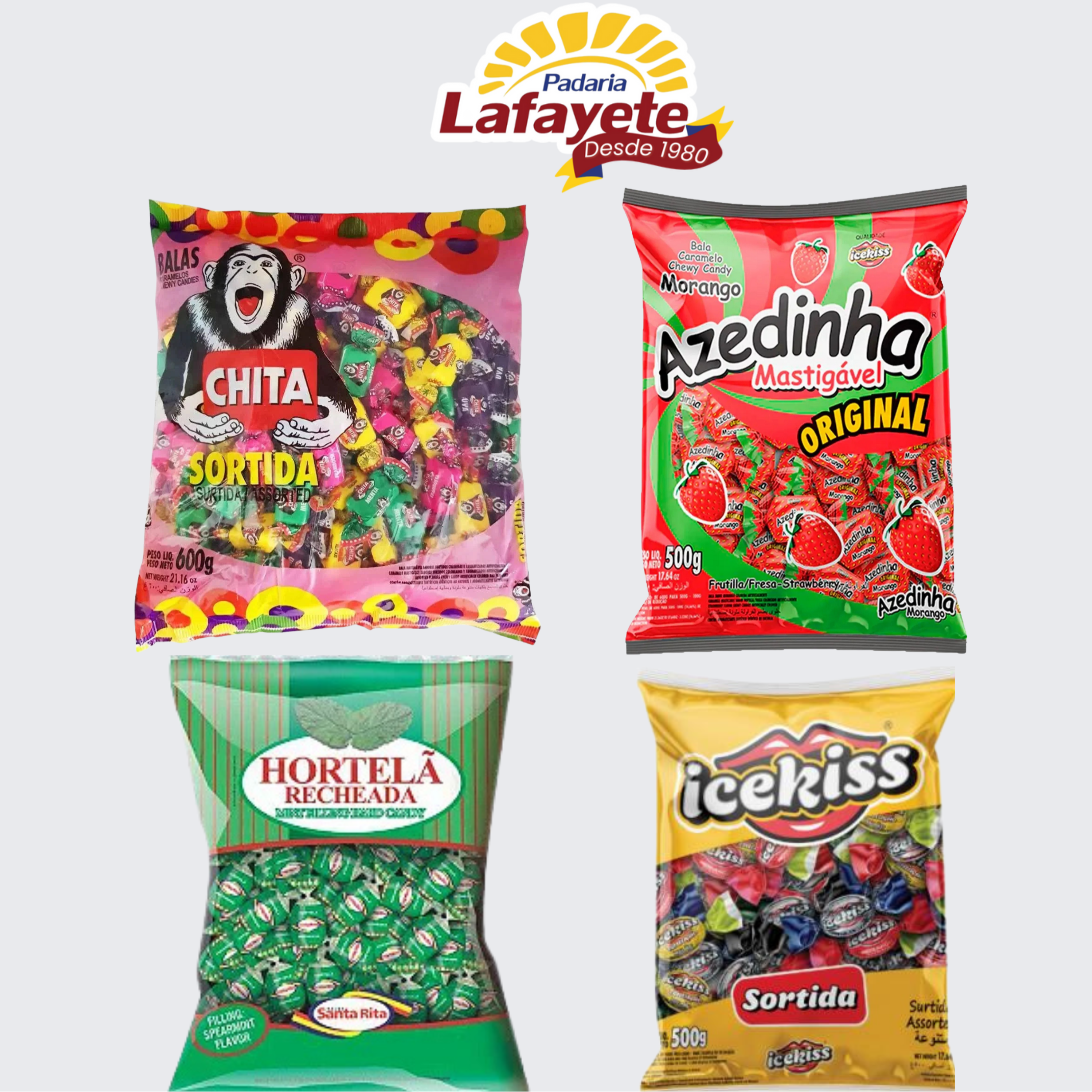 Uma seleção irresistível de balas mastigáveis e recheadas, com sabores variados como morango, hortelã, frutas e azedinhas. Perfeitas para compartilhar, montar kits, festas ou matar aquela vontade de doce a qualquer hora do dia. 😋 Coloridas, saborosas e cheias de variedade para agradar todos os gostos!