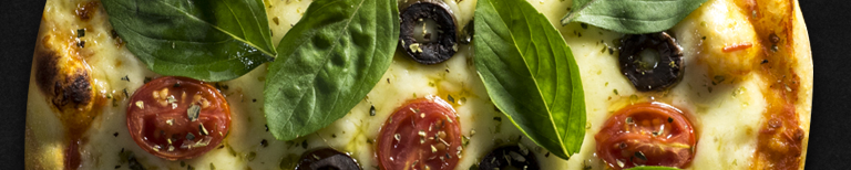 35 cm - 8 fatias Quatro Queijos - Parmesão, Provolone, Gorgonzola, Molho de Tomate, Muçarela, Azeitona Preta e Orégano. FranBacon Catupiry -Frango, Bacon, Requeijão Cremoso, Molho de Tomate, Muçarela, Azeitona Preta e Orégano.
