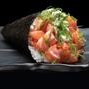 Futomaki sem arroz enrolado no tamagô, recheado com kani, salmão, atum, cream cheese, ovas de massagô e cebolinha.