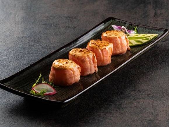 04 Sashimi Salmão 04 Sashimi de Barriga de Salmão 02 Jyo Salmão 04 Niguiri Salmão 04 Uramaki Alaska Não trocamos peças nos combinados. Acompanha nesse combinado 1 hashi e 30ml de shoyu.