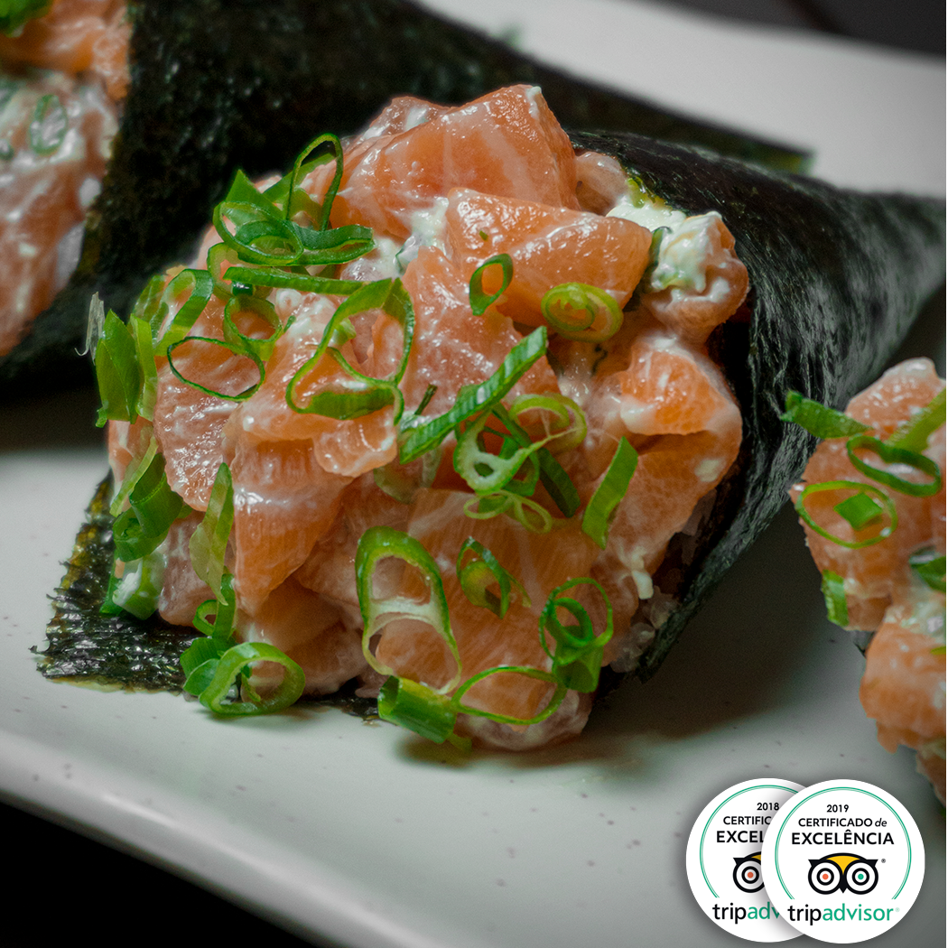Serve de 1 a 2 pessoas. Hot roll tradicional com tarê - 5 unidades Hot roll especial com tarê - 5 unidades Hot roll tradicional com crispy de couve - 5 unidades Hot roll especial com crispy de couve - 5 unidades Hot roll tradicional com crispy de alho poró - 5 unidades Hot roll especial com crispy de alho poró - unidades Hot roll tradicional com Doritos - 5 unidades Hot roll especial com Doritos - 5 unidades *imagem meramente ilustrativa