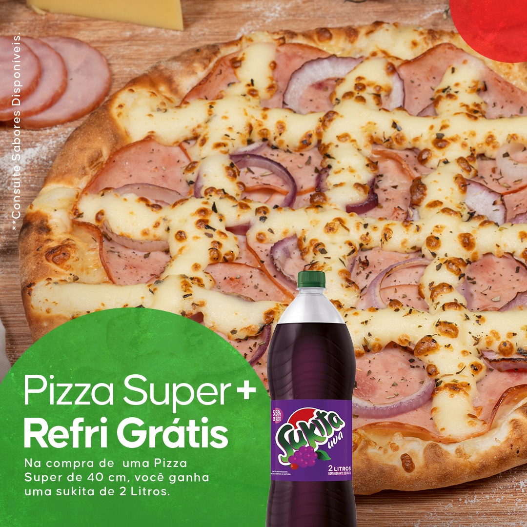 Aproveite nossa incrível oferta: Ao comprar uma Pizza Super de 40 cm, você ganha completamente grátis um refrigerante de 2 Litros! Este é um combo perfeito para compartilhar momentos alegres com amigos e família. A Pizza Super é preparada com ingredientes selecionados, garantindo um sabor inigualável. Não perca a chance de saborear essa maravilha e ainda se refrescar com um delicioso refrigerante!