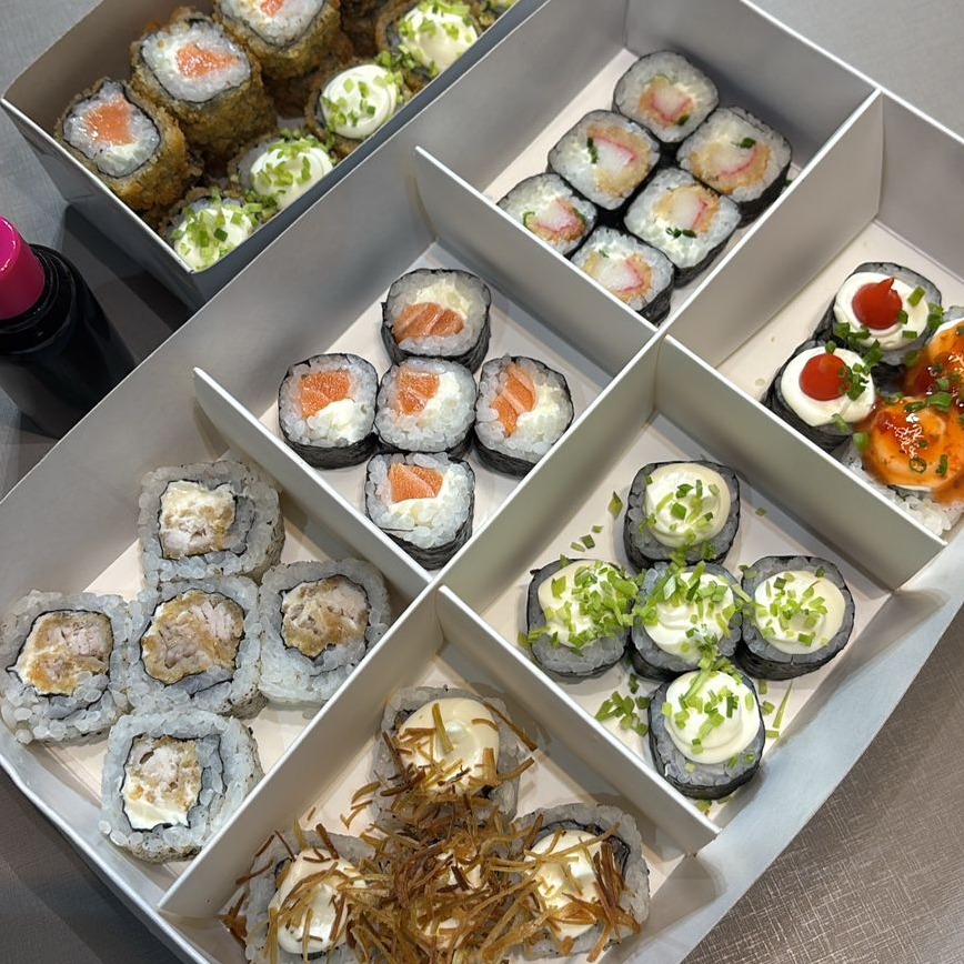 Combinado: - Hossomaki: 5x Philadelphia (salmão e cream cheese) 5x Fishroll (peixe, cream cheese e alho poró picadinho) 3x Kanicroc (empanado de kani, cream cheese e cebolinha) 4x Fishroll Pepper (peixe, cream cheese e pimenta biquinho) - Uramaki: 5x Skin Poró (pele de salmão, cream cheese e alho poró frito) 5x Uramaki Fishcroc (empanado de peixe e cream cheese) 3x Uramaki Fishchilli (peixe, cream cheese, geleia de pimenta) - Hot Rolls: 10x Hot Philadelphia (salmão e cream cheese) 5x Hot Poró (salmão, cream cheese e alho poró frito) Acompanha 50ml de shoyu. (01 garrafinha)