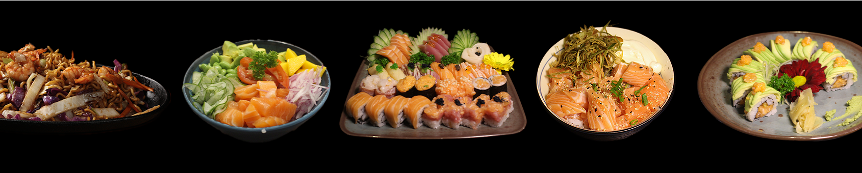 Comece por aqui, Hashi, Shoyu, Gengibre Extra, Raiz Forte Extra, Teriaky, Molho Agridoce e Gergelim