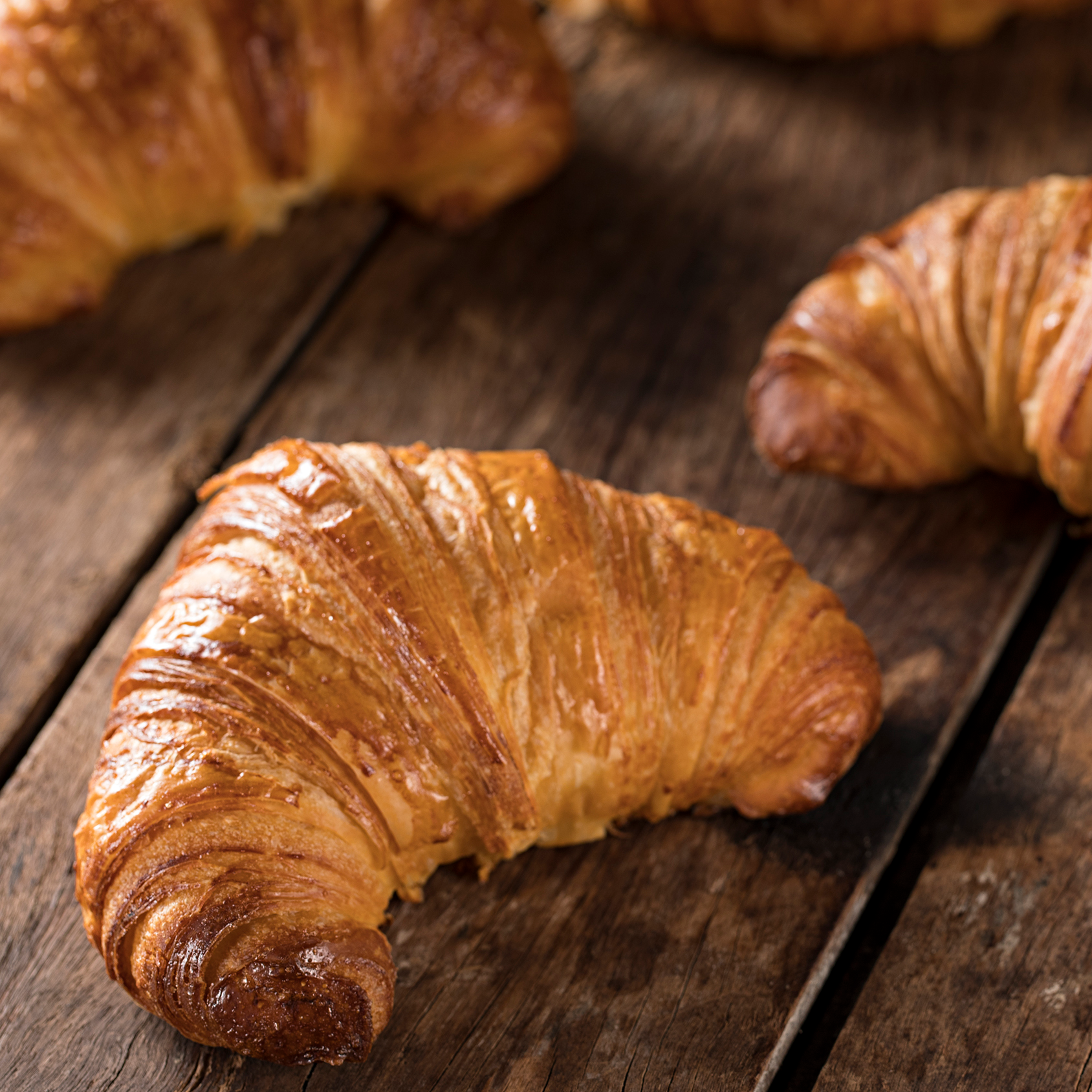 Pão de massa folhada feito à tradição francesa. Miolo leve e amanteigado, envolto na casca bem fina e crocante. Ótimo com queijos e geleias de sabor médio a intenso.