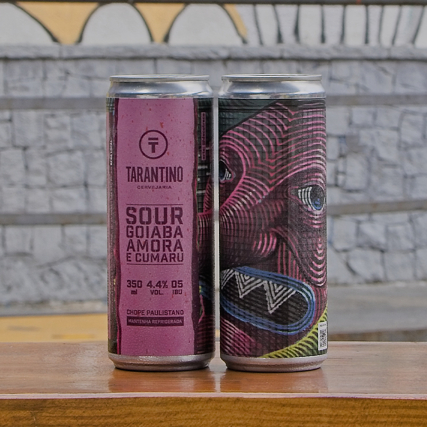 Chope na lata 350ml unitário de Tarantino Sour Goiaba, Amora e Cumaru Teor Alcoólico: 4.4% | IBU: 5 | Sem Amargor Sour Goiaba, Amora e Cumaru é uma cerveja com um perfil de sabor único, ideal para quem busca uma bebida leve e sem amargor para acompanhar bons momentos. Apresenta uma cor rosa claro encantadora, resultado da adição de amora. No aroma e no paladar, destaca-se a presença marcante de goiaba e o perfume adocicado e exótico da semente de Cumaru, a "baunilha da Amazônia". O dulçor da goiaba e o retrogosto persistente do cumaru se harmonizam com a acidez láctica, resultando em uma cerveja leve, com zero amargor e um final seco e limpo. Harmoniza com: pratos leves como saladas cítricas, queijos de cabra frescos e sobremesas com frutas vermelhas ou goiabada. Arte no rótulo: Deco Treco (@decotreco)