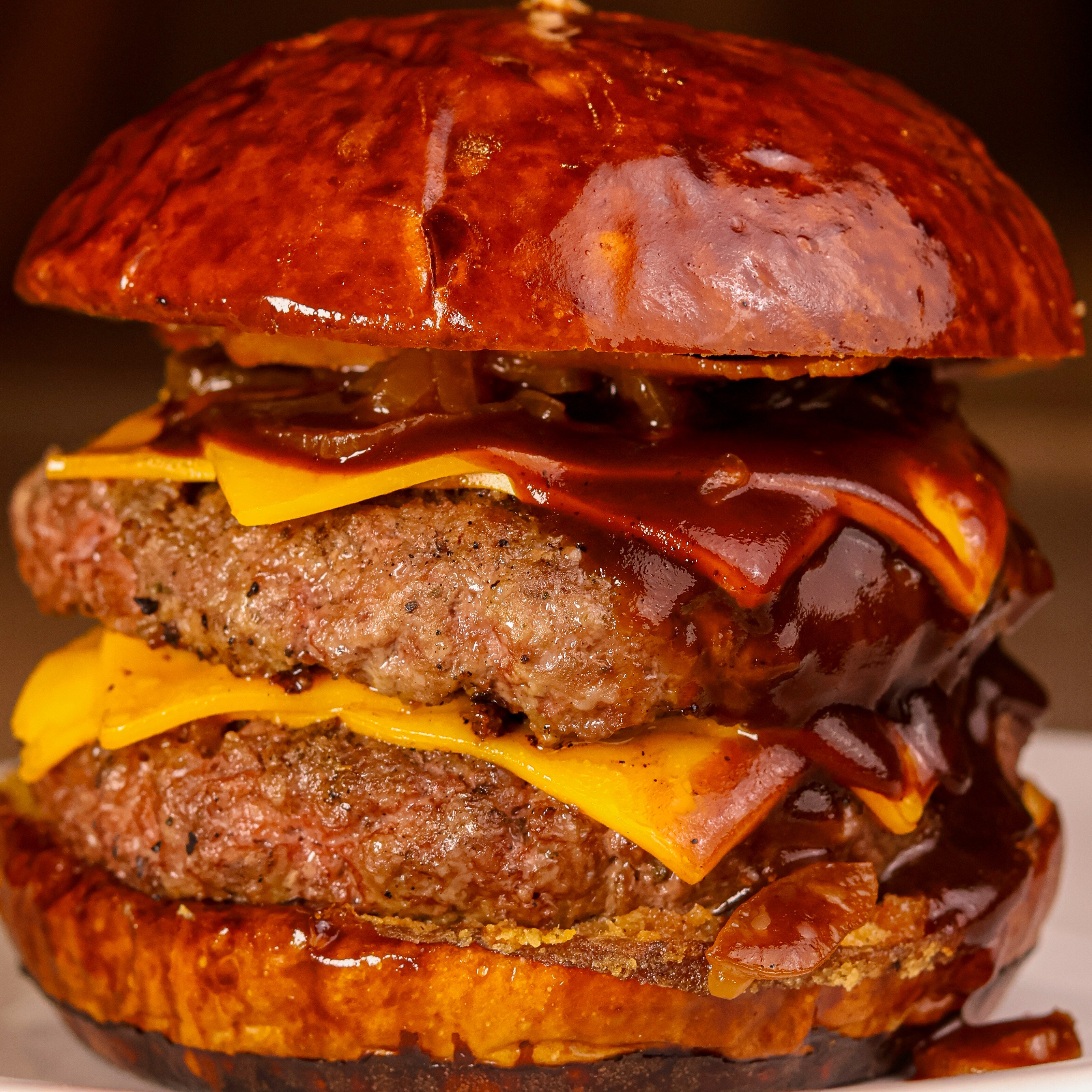 Este hambúrguer exibe dois suntuosos blends bovinos de 160g, suculentos e intensamente saborosos, montado em um pão brioche selado na manteiga. Ele é acompanhado por um queijo cheddar deliciosamente derretido, criando uma harmonização perfeita e irresistível. A doçura equilibrada da cebola caramelizada adiciona um toque sofisticado, enquanto a maionese de ervas infunde um frescor distinto. O grand finale é o barbecue com toque de cachaça de jambu, que amplifica os sabores, e o crocante de bacon, que adiciona uma textura viciante. Este prato é um autêntico 'Matador de Fome'!
