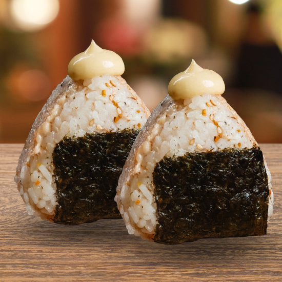 Sucesso de vendas! São dois bolinhos de arroz, com tempero especial, recheados com salmão grelhado e a famosa maionese Kewpie™