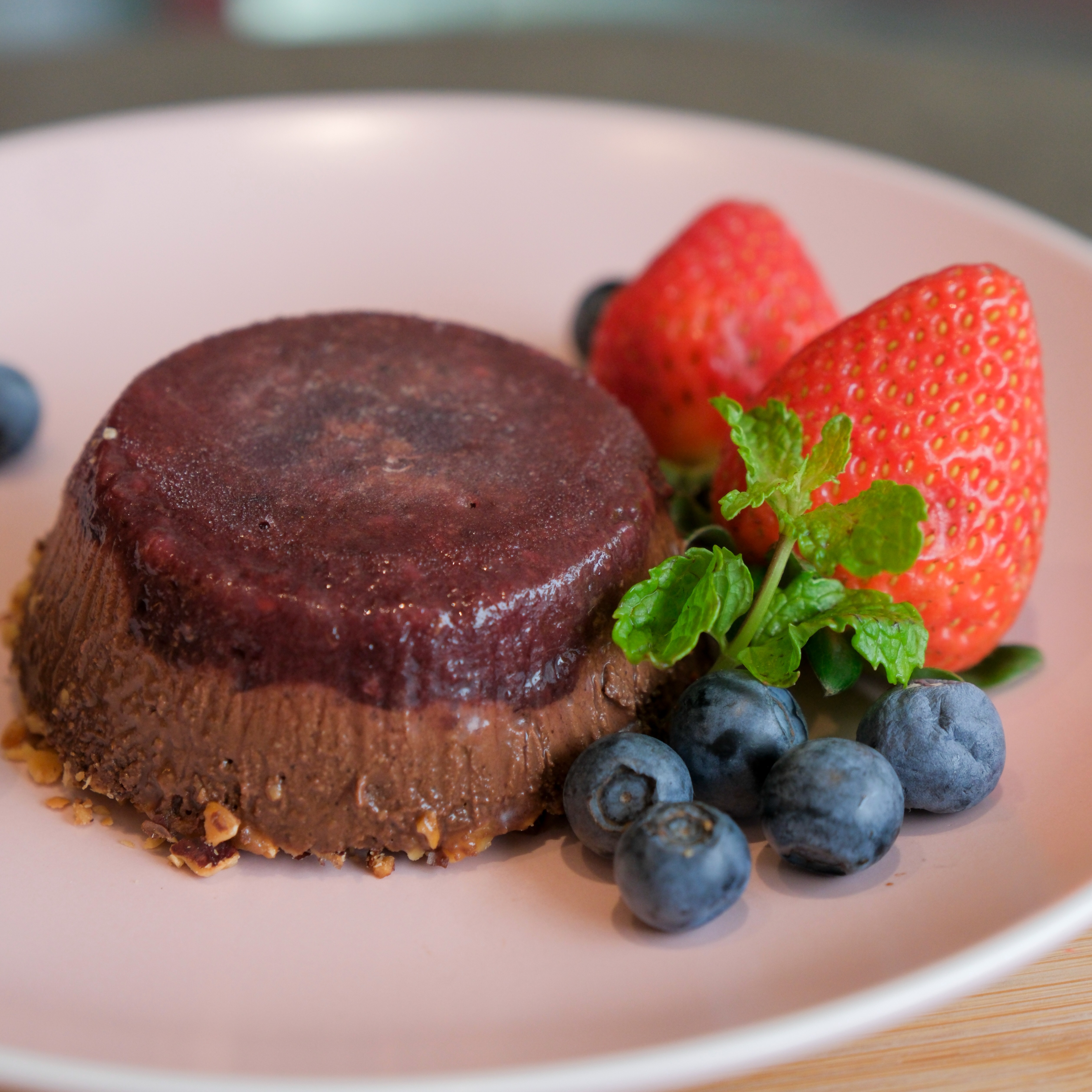 Uma sobremesa muito especial! Prática, deliciosa e muito versátil, perfeita para todos esses eventos de fim de ano! Ela tem o sabor intenso da trufa de chocolate, um azedinho da framboesa e calda de frutas vermelhas e o crocante de avelã pra dar aquele toque especial! Só desinformar e esperar alguns minutos até ficar no ponto cremoso! Ingredientes: Trufa (chocolate 70%, castanha de caju, leite de coco, óleo de coco, água, tâmara, maçã em pó, extrato natural de baunilha e sal); calda de frutas vermelhas (morango, framboesa, mirtilo, amora, maçã em pó, tâmara e água); avelã. PRODUTO CONGELADO INFORMAÇÃO NUTRICIONAL: Porções por embalagem: 4 Porção de 25g (1 col sopa) Valor Energético: 308kcal Carboidratos : 25g Açúcares totais: 12g Açúcares adicionais: 5,8g Proteínas: 4,4g Gorduras Totais: 21g Gordura Saturada: 11g Gordura Trans: Zero Fibra Alimentar: 7,9g Sódio: Zero